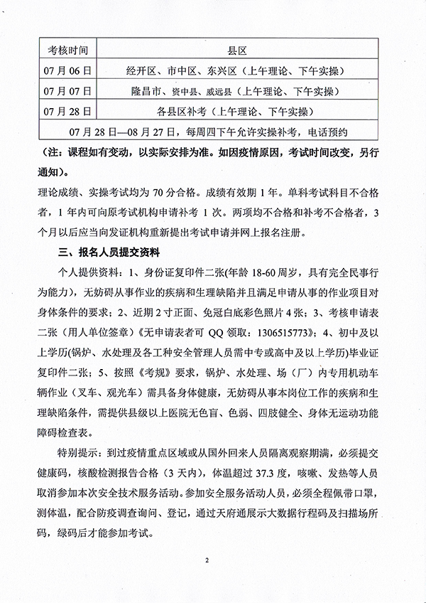 2022年春生公司02期特種設備作業(yè)人員考核時間安排