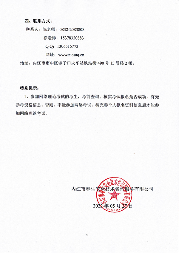 2022年春生公司01期特種設備作業(yè)人員考核時間安排