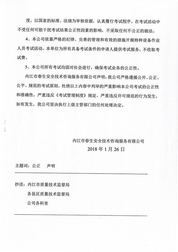 內(nèi)江春生安全技術(shù)咨詢服務(wù)公司公正性聲明