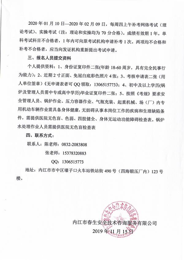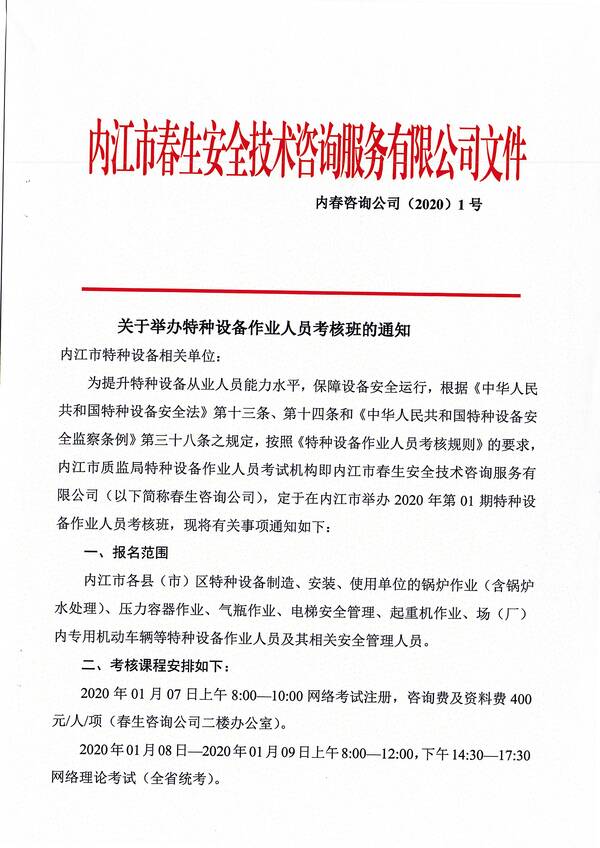 2020年第一期特種設(shè)備作業(yè)人員考核培訓(xùn)班的通知
